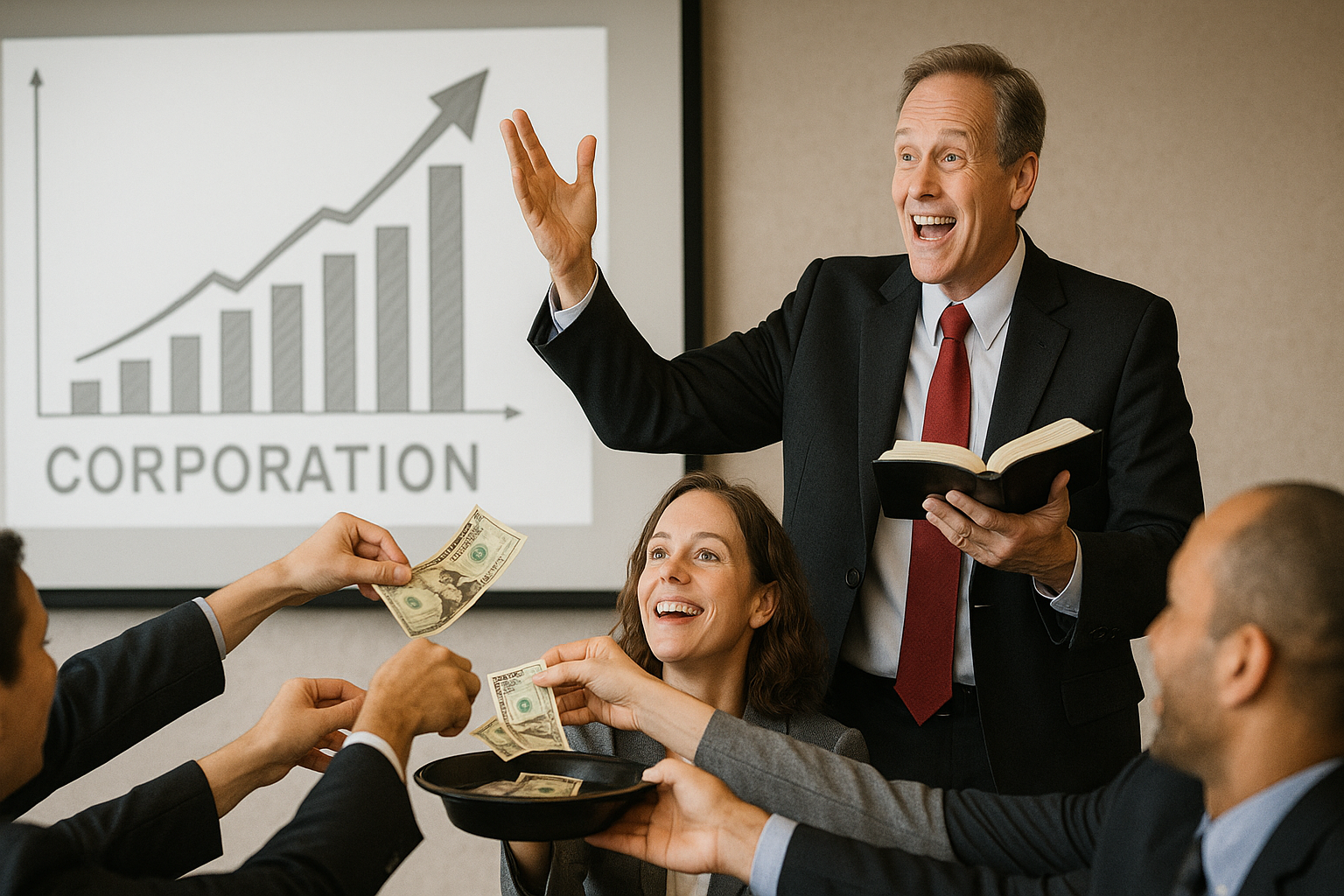 Јеванђеље благостања, било у „црквеном“ или у корпоративном руху, престаје да буде радосна вест — и постаје средство контроле.
